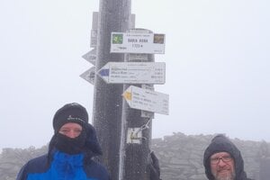 Na Babiu horu sme dorazili tesne pred 8.00 h. Kochať výhľadmi sa nedalo. Viditeľnosť bola sotva do 10 metrov. Po pár minútach a vrcholových fotografiách sme vyrazili smer Malá Babia hora a najsevernejší bod Slovenska, Modralová. Vietor bol výrazne proti nám a udržať sa s ťažkým batohom na zľadovatených skalách nám robilo značné problémy. S námahou a vďaka paličkám sme sa udržali a vietor nás neodfúkol. Na Malej Babej hore sme boli ešte v zajatí oblačnosti, chladu a vetra. S klesajúcu nadmorskou výškou sme postupne vystupovali z oblakov, teplota sa zvyšovala a vietor medzi stromami ustál.